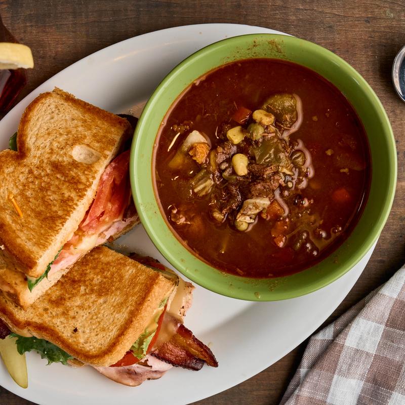 Our own made-from-scratch recipe. Served with a corn muffin. Seasonal | 440 CAL