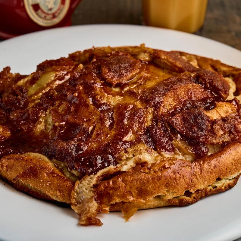 Topped with Granny Smith apples and cinnamon sugar. Served with apple syrup | 820 CAL