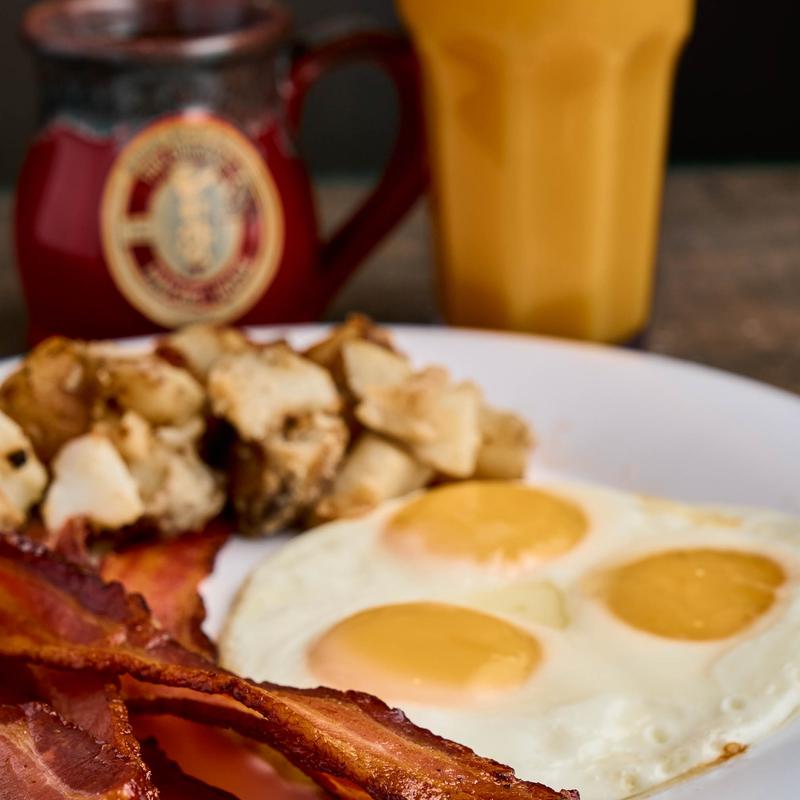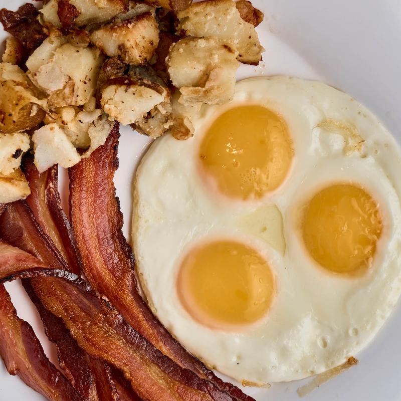With our famous thick-sliced bacon served with bread of your choice | 670 CAL